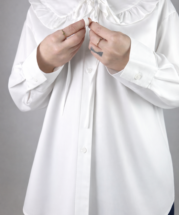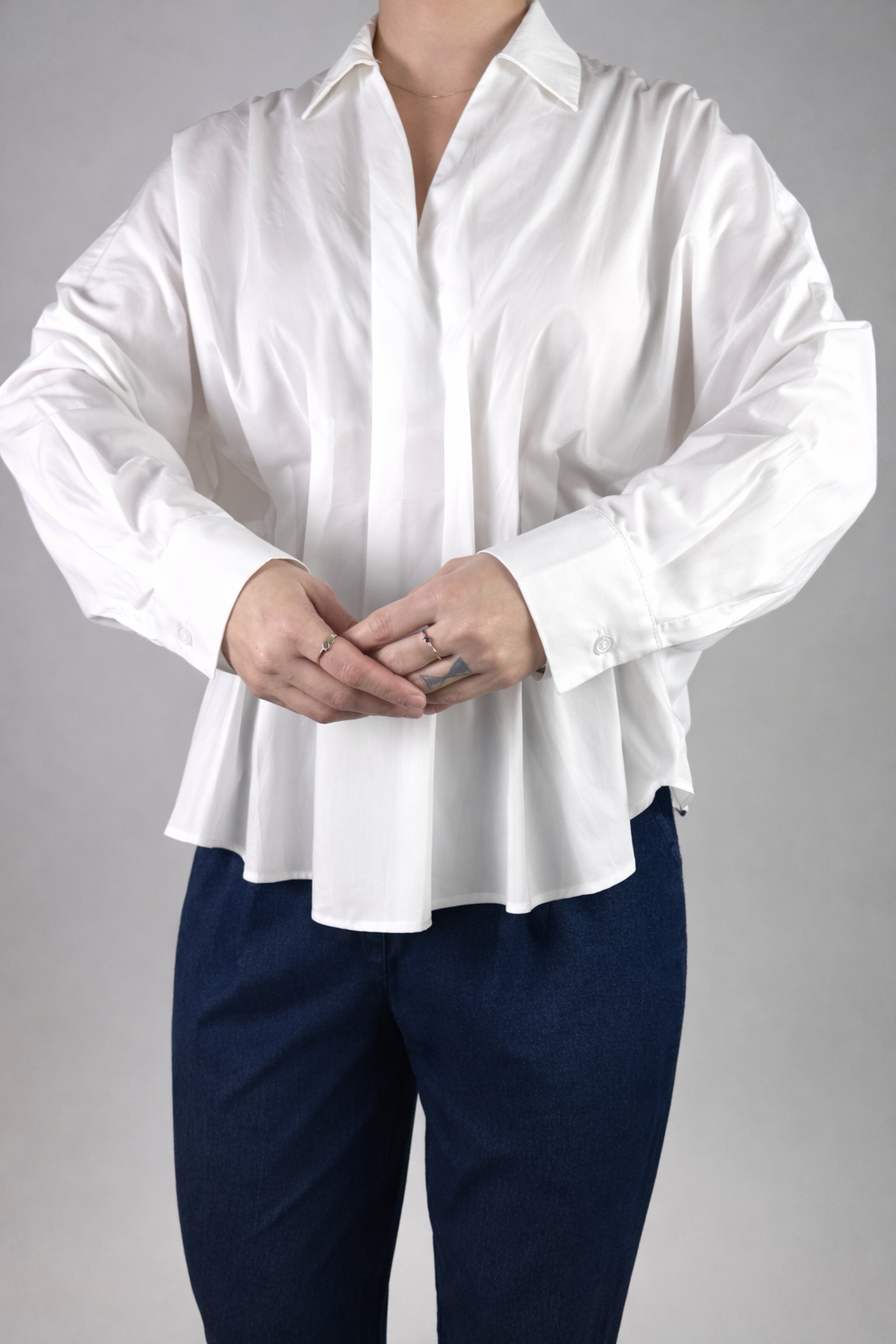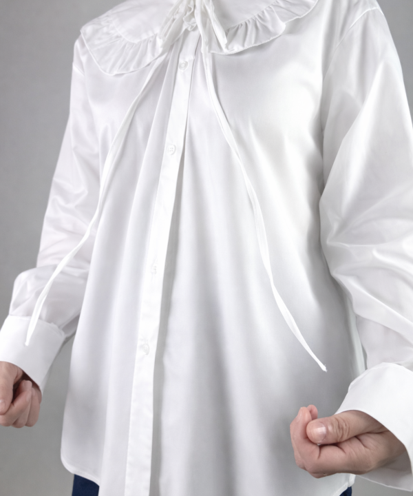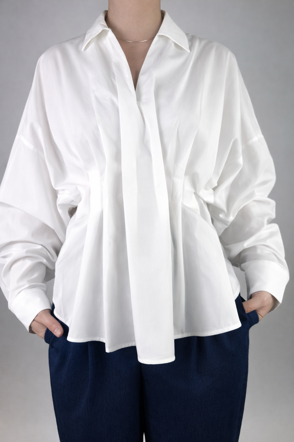 Pliuri delicate in partea frontala, maneci lungi cu mansete.